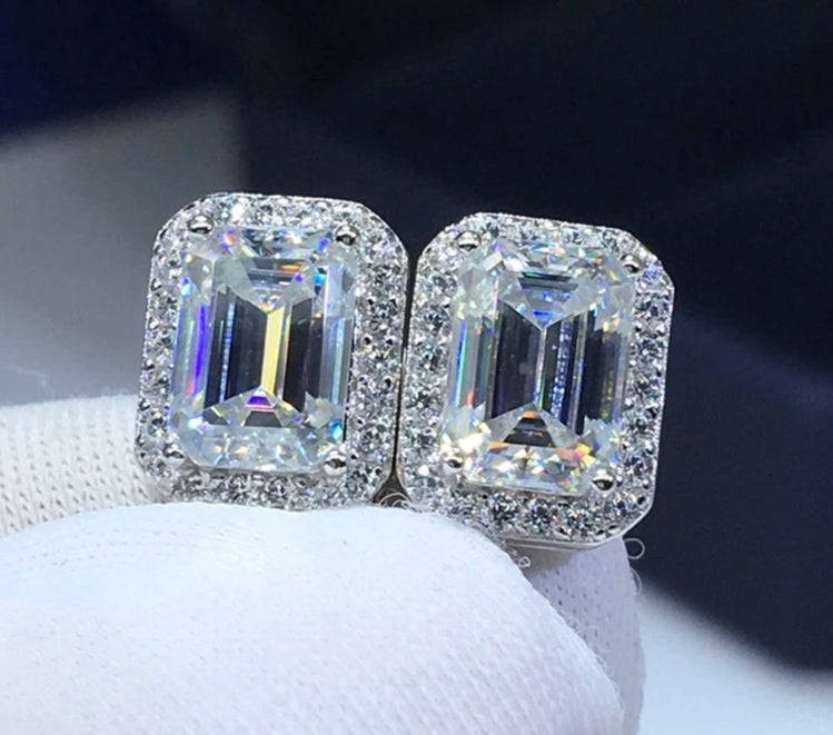 Refined and radiant, the Twilight Crest Studs are a timeless expression of elegance touched by evening light. Crafted from 925 sterling silver and finished with white gold plating, these stud earrings feature emerald-cut VVS moissanite stones in 0.5-carat and 1-carat sizes, offering a choice between subtle sparkle and bold brilliance.