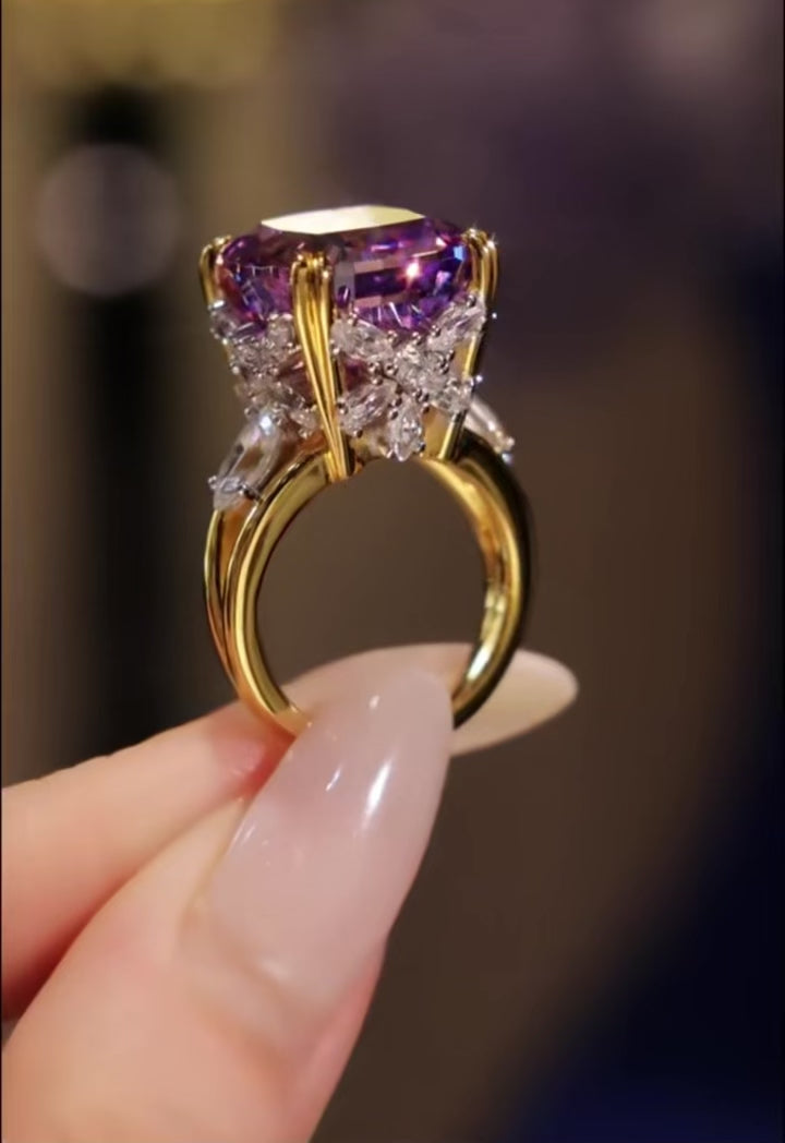 Like a whispered wish beneath twilight skies, the Lavender Spell Ring enchants with every glance. At its heart lies a luminous 10-carat purple lab sapphire, shimmering with mystery and magic, set in a prong setting that allows its violet fire to dance freely with the light.