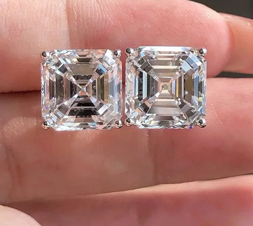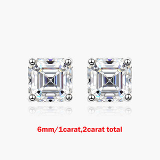 A study in refinement and radiance, the Asscher Allure Studs celebrate timeless beauty through perfect symmetry and fire. At their heart lies a pair of 7mm Asscher-cut Moissanite stones, each meticulously crafted to reveal an intricate maze of facets that dance with light. The squared silhouette and step-cut brilliance evoke vintage glamour with a modern soul.