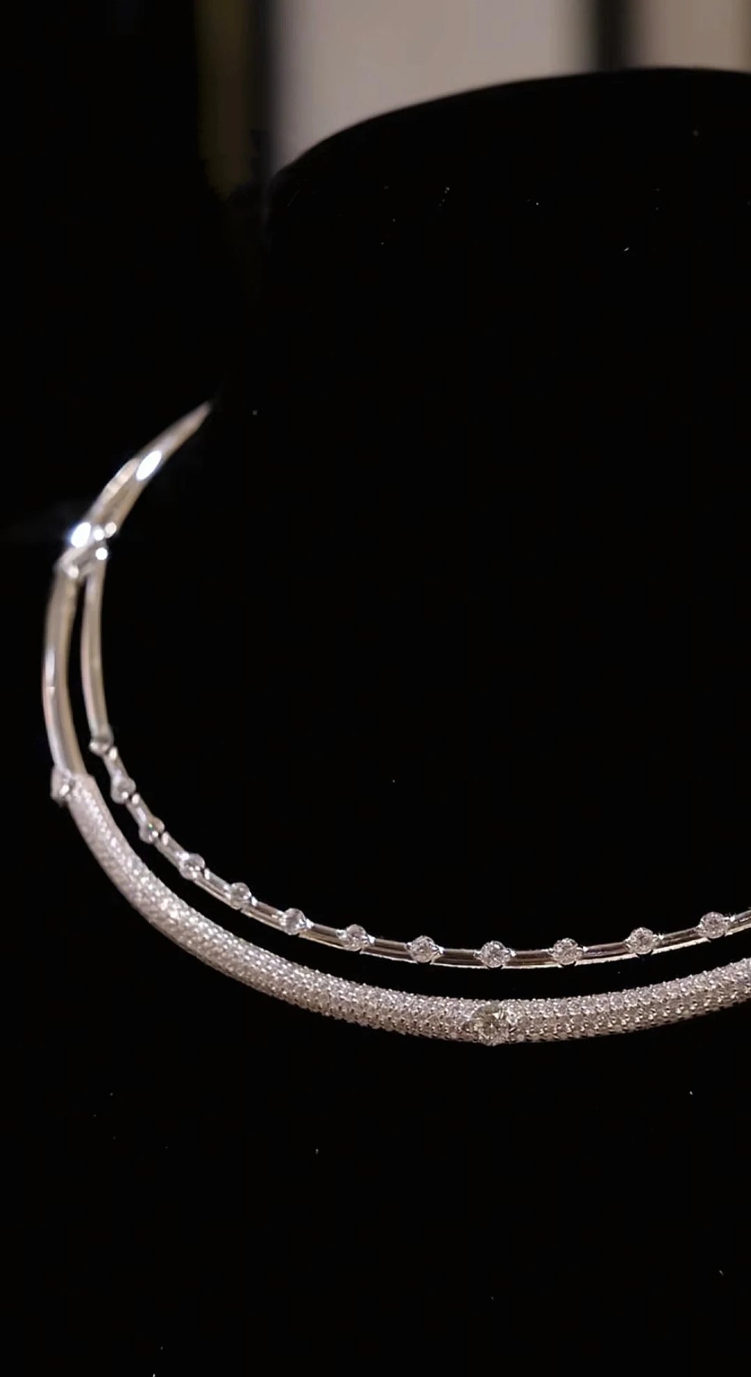 Weighing 85 grams and measuring 40 centimetres in length, this piece carries both presence and poise. Each sapphire is set with precision, catching and refracting the light with a brilliance that mirrors falling stars. The dual layers rest gently around the collarbone, creating a structured yet fluid silhouette that moves with effortless grace.