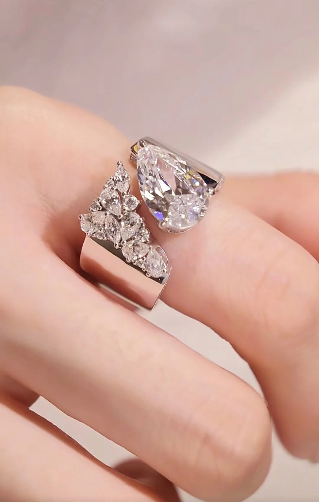The Symmetria Ring celebrates balance, beauty, and the art of perfect form. Its graceful water-drop silhouette captures the essence of symmetry found in nature, reflecting harmony in every curve and contour. Designed with radiant lab sapphires, the ring glimmers with a deep, enchanting brilliance that shifts effortlessly with the light.