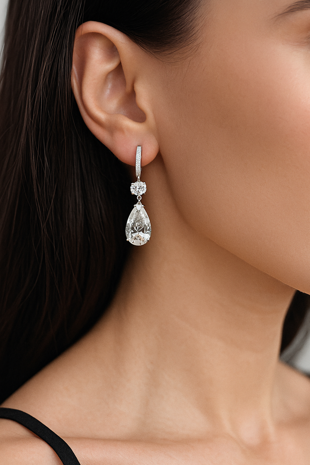 To preserve the brilliance of your Crowned Dewdrop Earrings, avoid direct contact with water, perfume, and harsh chemicals. Clean gently with a soft, dry cloth and store in a lined jewellery box when not in use.