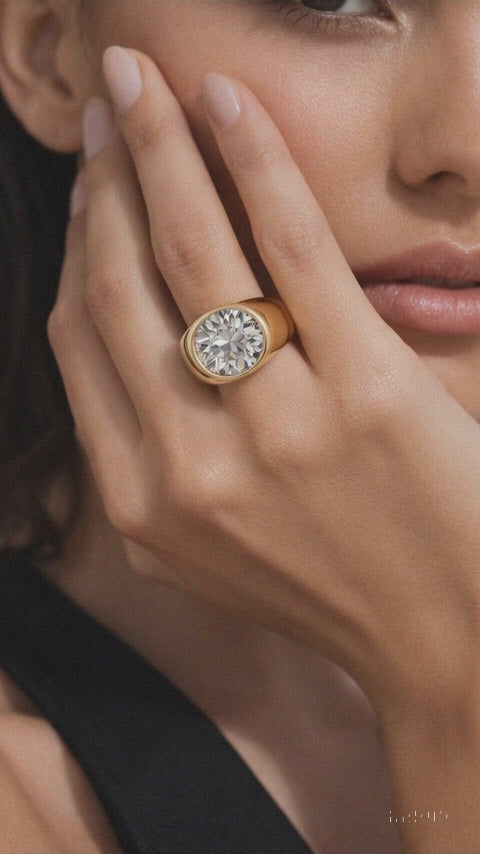 Designed to feel timeless from the very first wear, the Heirloom Bezel Ring is a modern classic with unmistakable presence. A bold, round, brilliant lab-grown diamond is set deep into a smooth, sculpted bezel, allowing the stone to sit protected, powerful, and luminous from every angle. The bezel setting doesn’t compete with the diamond; it frames it with quiet authority.