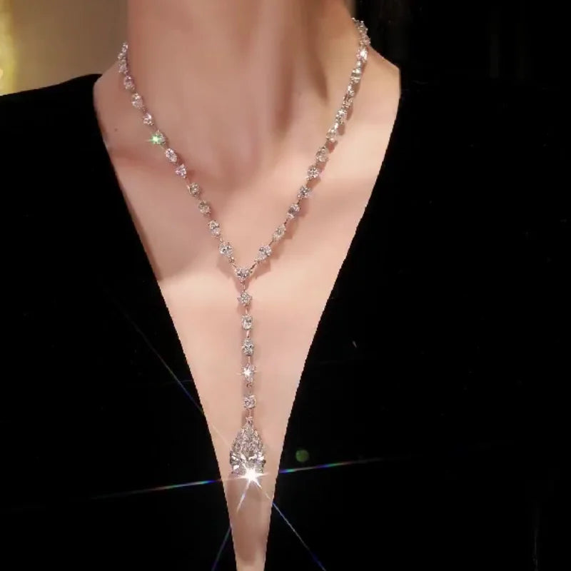 The Opaline Drop Necklace is a graceful expression of luminescence and modern elegance, designed for those who appreciate refined beauty with a touch of enchantment. Crafted in high-quality 925 sterling silver and finished with luxurious gold plating, this necklace showcases radiant lab sapphires whose shimmering hues evoke the soft glow of opal-inspired light. Its 34-gram weight offers a reassuring sense of quality, while the sleek, elongated drop silhouette adds effortless sophistication to any ensemble.