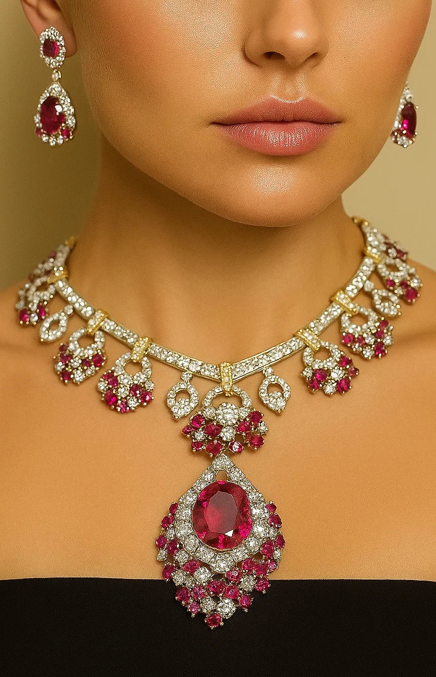 A whisper from the past, the Maharani Ruby Necklace is an ode to regal beauty and quiet power. Inspired by the splendour of royal dynasties and the enduring allure of vintage heirlooms, this necklace glows with the passion and depth of a ruby-red sunrise. The centrepiece is a vivid ruby, radiating warmth and strength, chosen to mirror the soul of a maharani: radiant, timeless, and unshaken.