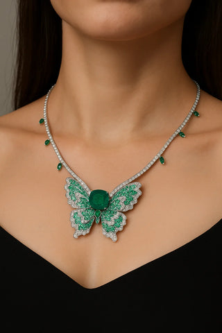 Butterfly of Eden Necklace with green lab sapphire in butterfly design on sterling silver snake chain – nature-inspired sapphire necklace for women