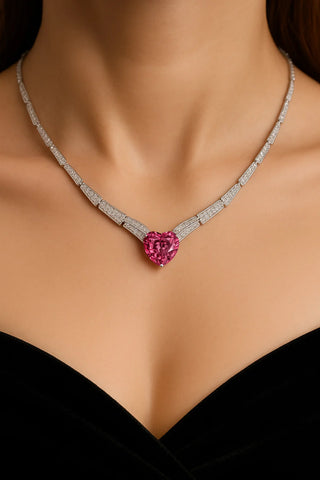 The Heartbeat Necklace in sterling silver with red lab sapphire – simple and elegant heart necklace gift for girlfriend or mother