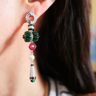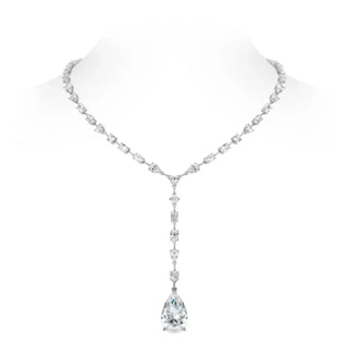 Elegant Aqua Mist Teardrop Earrings crafted in 925 sterling silver, featuring a pear-cut blue lab sapphire surrounded by soft accents of white, pink, and green lab sapphires. The earrings exude a serene, watery glow, perfect for adding effortless elegance to any look. Ideal for warm-weather occasions.