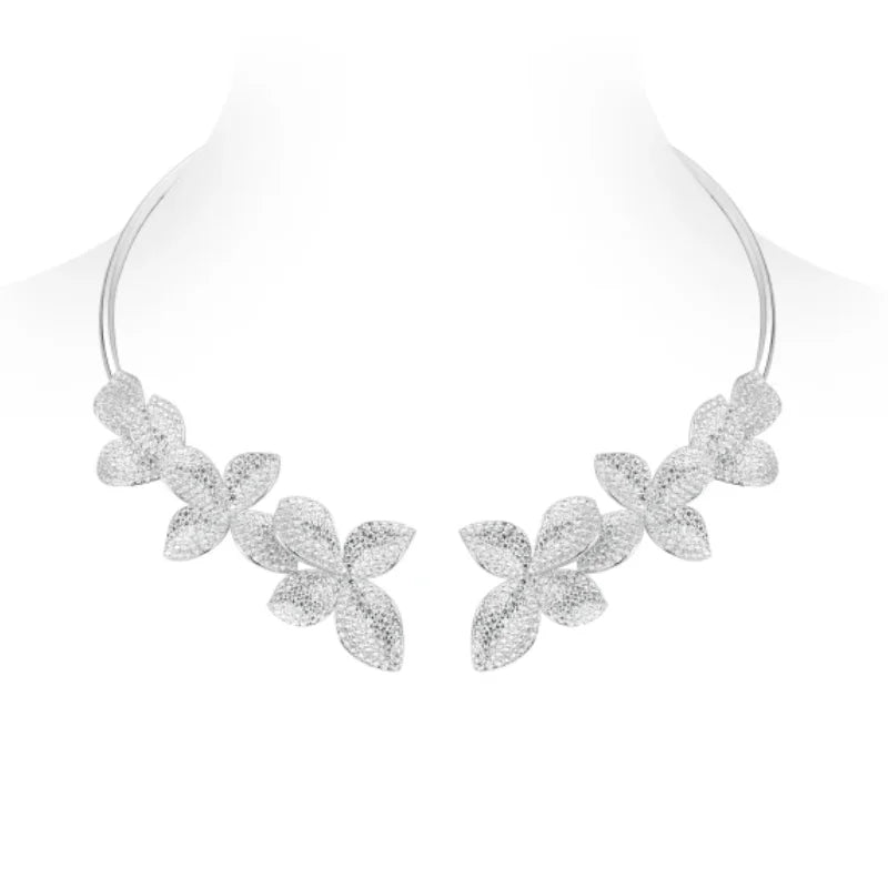 With its smooth, curved structure and meticulous detailing, the Diamond Blossom Collar sits beautifully along the neckline, adding instant sophistication to evening attire or elevating everyday ensembles with its luminous presence. A timeless blend of artistry and allure, it is perfect for those who appreciate jewellery that stands out with subtle opulence.