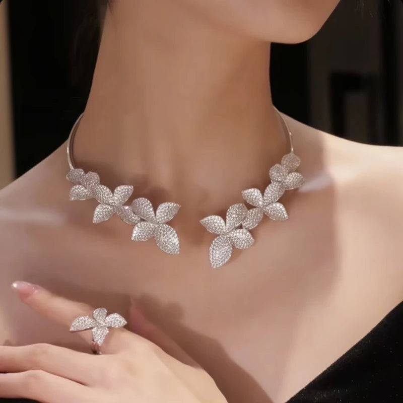 To preserve the beauty of your Diamond Blossom Collar, store it separately in a soft pouch or lined jewellery box. Avoid contact with water, perfumes, lotions, and harsh chemicals. After each wear, gently wipe the piece with a soft, dry cloth to maintain its shine.