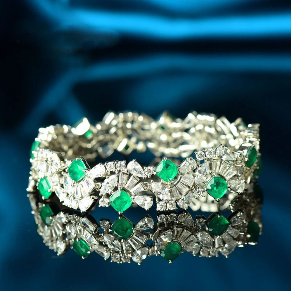 Available in 16 centimetres, 17 centimetres, and 18 centimetres lengths and weighing 30 grams, the bracelet drapes the wrist with graceful confidence. The vivid emerald tones evoke the lush beauty of royal gardens and the mystique of ancient jewels, blending heritage with modern design.