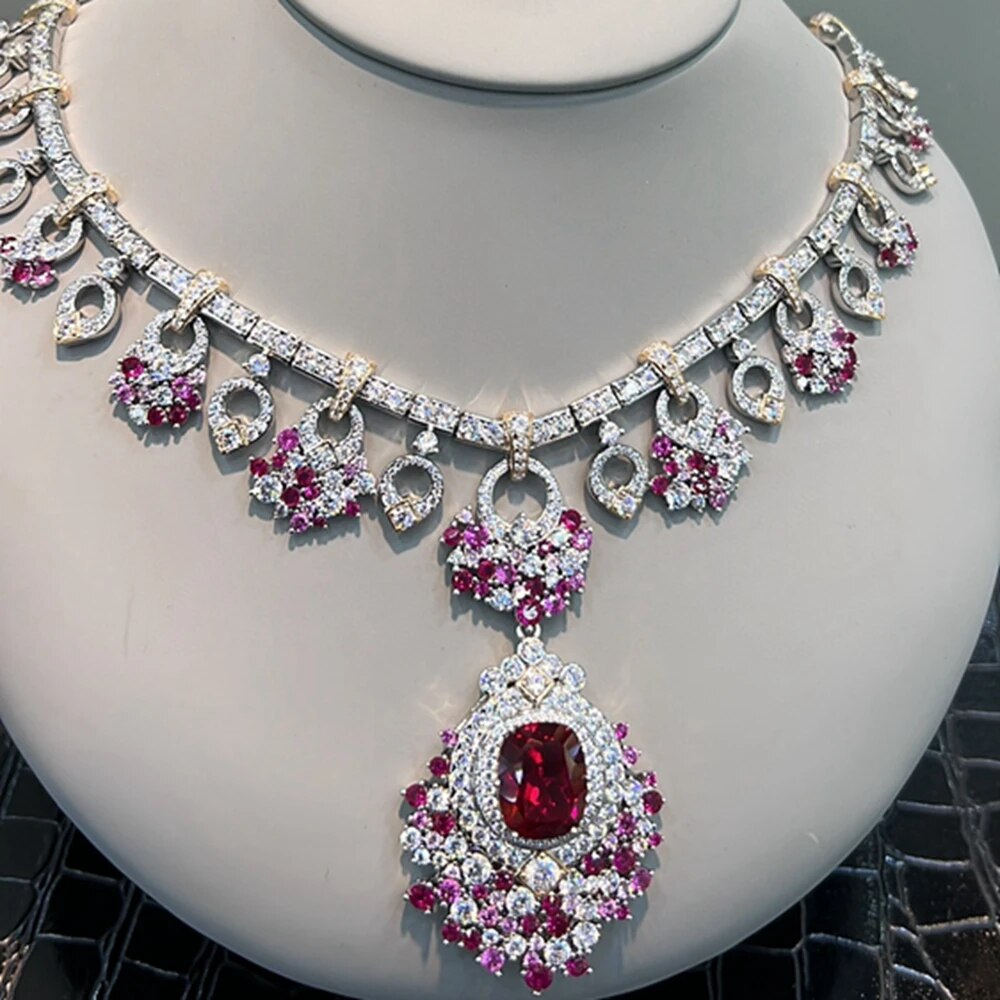 Crafted from 925 sterling silver and coloured in rich red tones, this piece rests gracefully at 43 centimetres, encircling the neck like a crown. It weighs 60 grams, offering a gentle weight that grounds its elegance in something deeply felt. The design holds no certificate, but its presence speaks for itself. Whether worn for a ceremony, celebration, or simply as a piece of self-adornment, this necklace tells a story of lineage, love, and legacy.