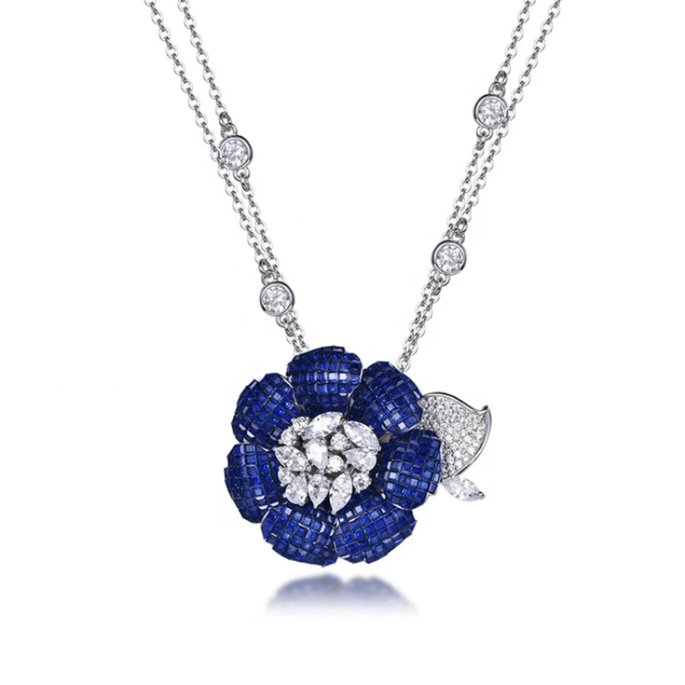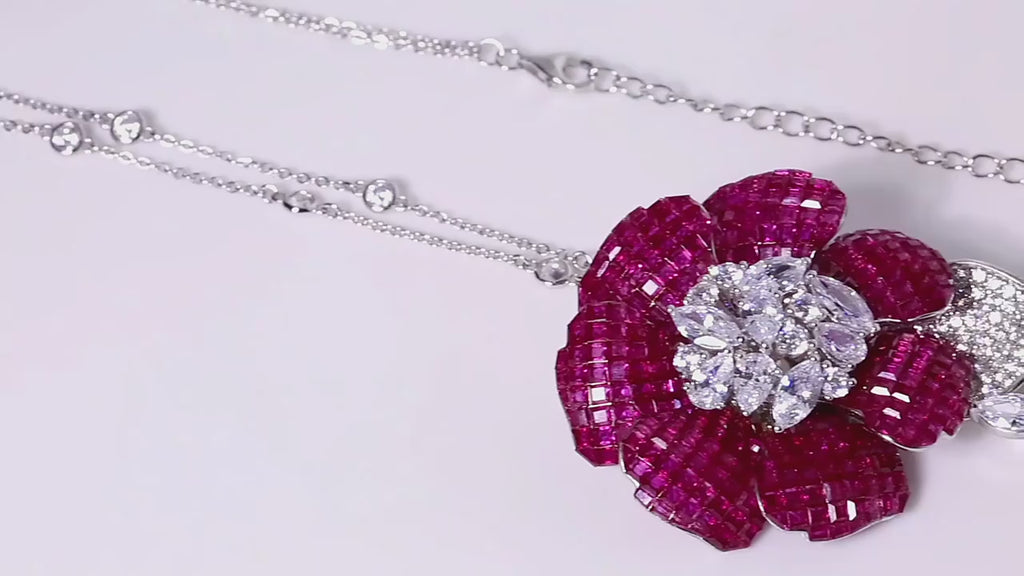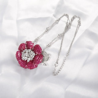 The Rosabella Necklace is a romantic statement of grace and allure crafted from solid 925 sterling silver and set with a brilliant lab-created sapphire. It is available in two enchanting colorways, deep rose red and deep aquamarine, each one telling its own story of elegance and emotion.