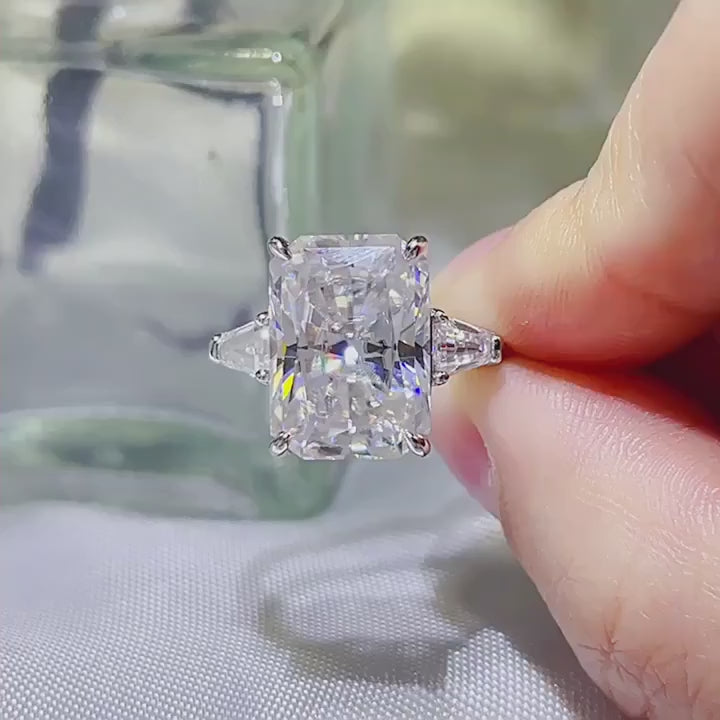 Celebrate a love story that spans lifetimes with the Threefold Vow Ring, a radiant expression of devotion, unity and timeless promise. This exquisite piece features a trio of Moissanite gemstones, each cut in a blend of radiant and emerald silhouettes to symbolise the enduring power of love in its past, present and future forms. The refined symmetry of its three-stone setting mirrors the balance and strength found in lasting connections.