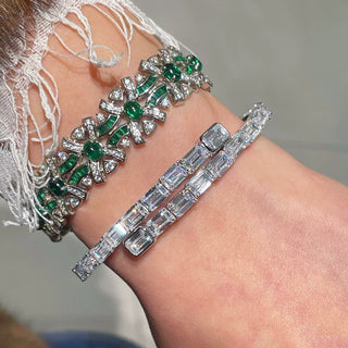 To maintain the brilliance of your Sapphire Symphony Tennis Bangle, avoid contact with water, perfume, and harsh chemicals. Gently clean with a soft, dry cloth and store in a fabric-lined box when not in use.