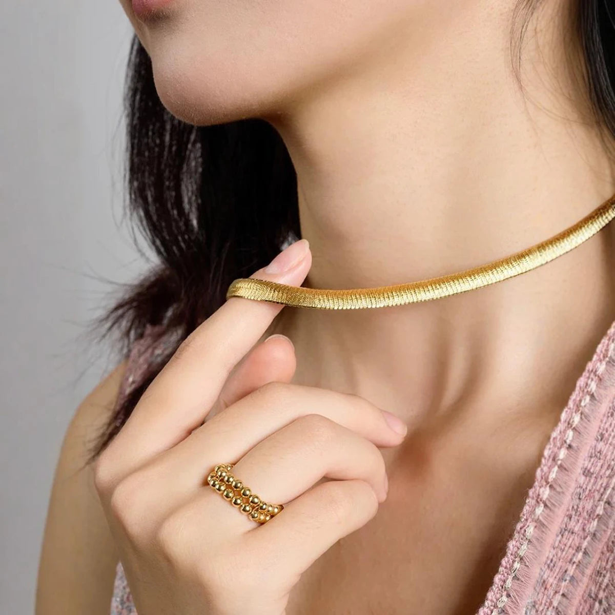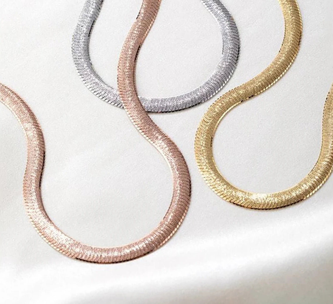A symbol of elegance, woven in a fluid form, the Serpentina Necklace winds like a golden whisper around the neck, capturing the beauty of movement and the mystery of allure. Crafted from sterling silver and available in a selection of radiant finishes, including silver rose gold, 18K gold, and 24K gold, this piece offers a timeless glow to suit every mood and moment.