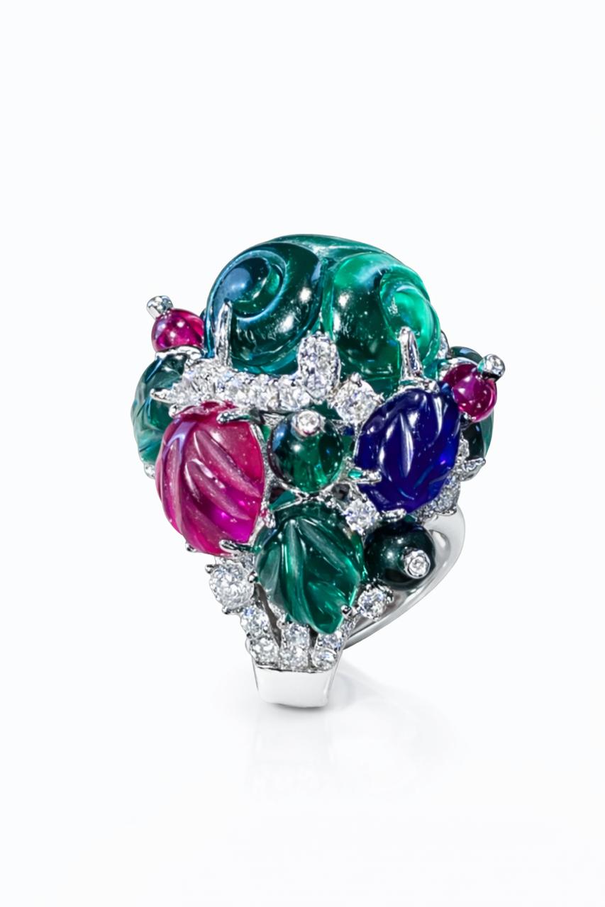 Bright, bubbly, and full of fun, the Tutti Frutti Ring is like a little party for your fingers. Made from platinum-plated 925 sterling silver, it’s sprinkled with colourful lab-created sapphires that resemble sweet candy gems. Each tiny stone is prong-set to sparkle and shine, creating a joyful rainbow that you can wear everywhere.