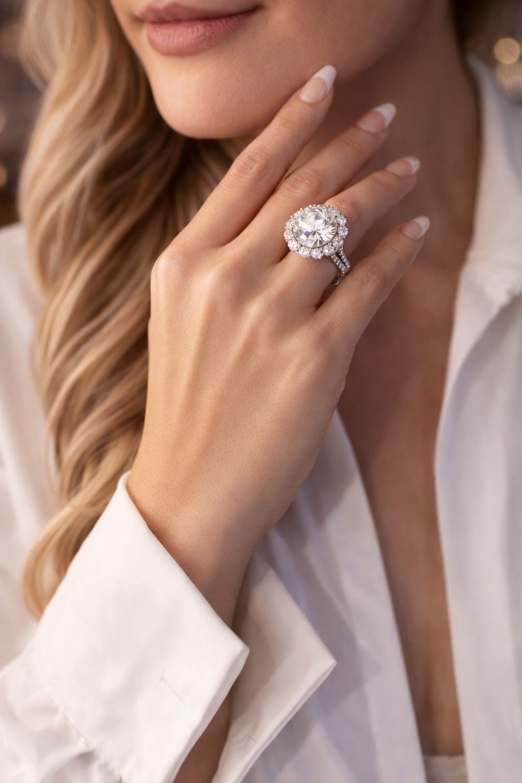 All the drama of a diamond, without the worry. Our 10-carat Maharani Ring is crafted in solid 18K white gold and features a certified 10-carat D-colour Moissanite that radiates light from every angle. Designed to rival the finest natural diamonds, this piece offers grand sparkle with none of the travel stress.