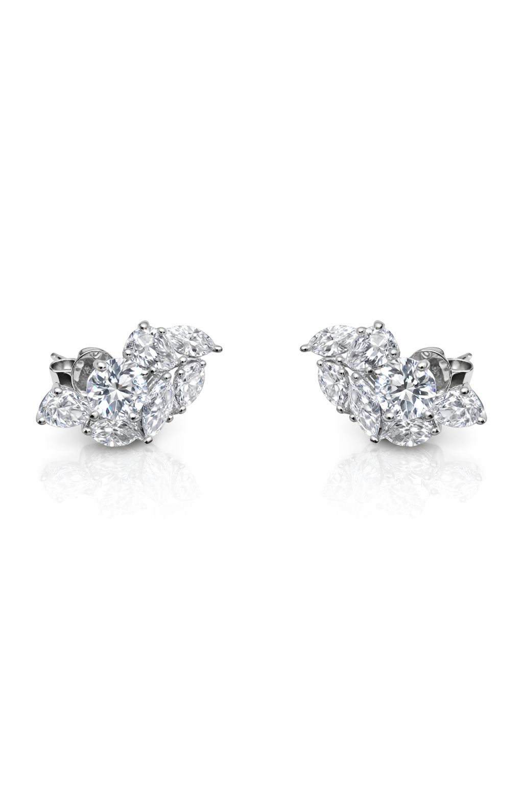 Sculptural and refined, the Laurel Crest Studs reinterpret classic diamond studs through a modern, organic form. Designed to trace the natural curve of the ear, this cluster composition brings together round, pear, and marquise-cut lab-grown diamonds in a fluid, leaf-like arrangement.