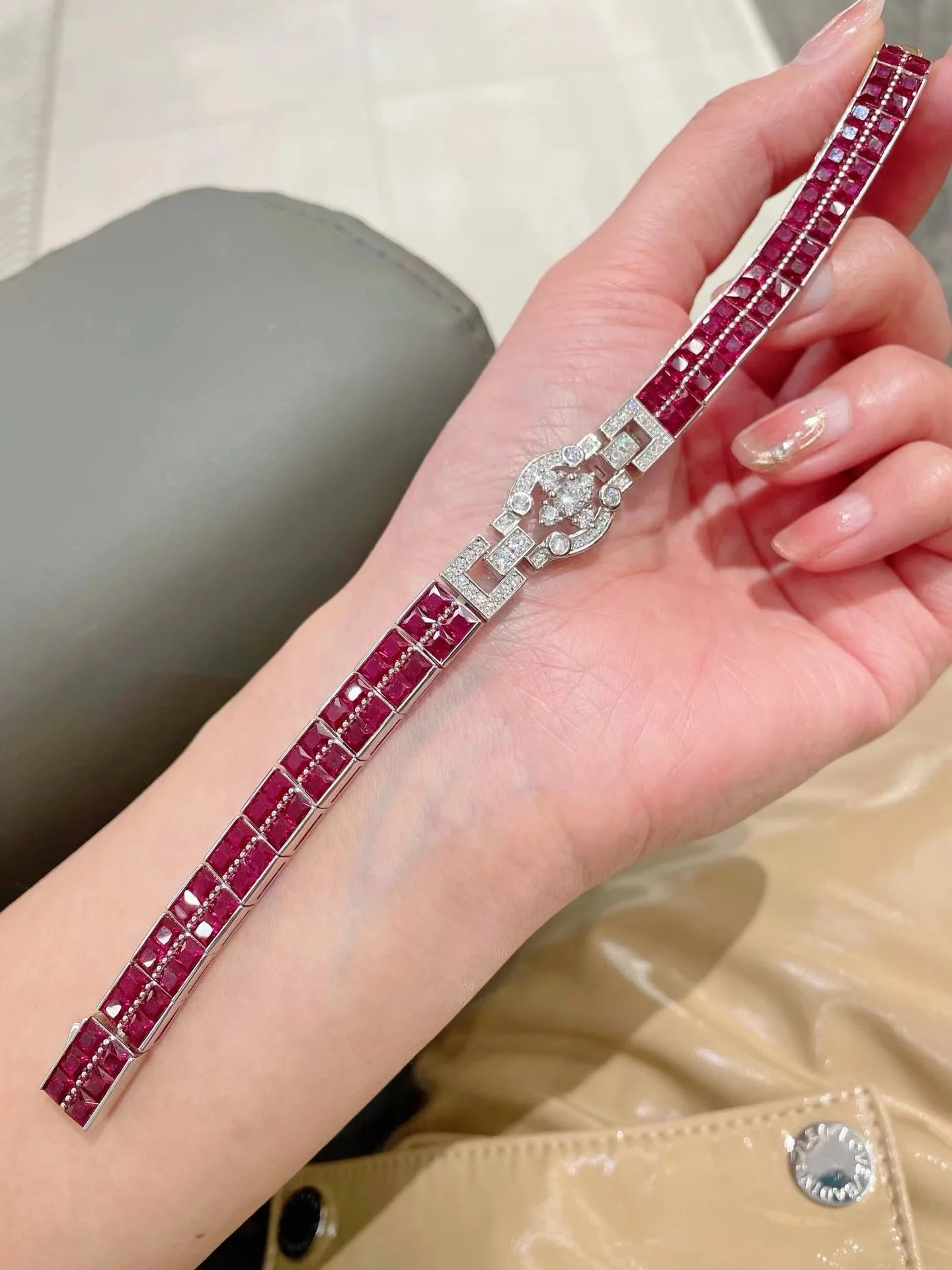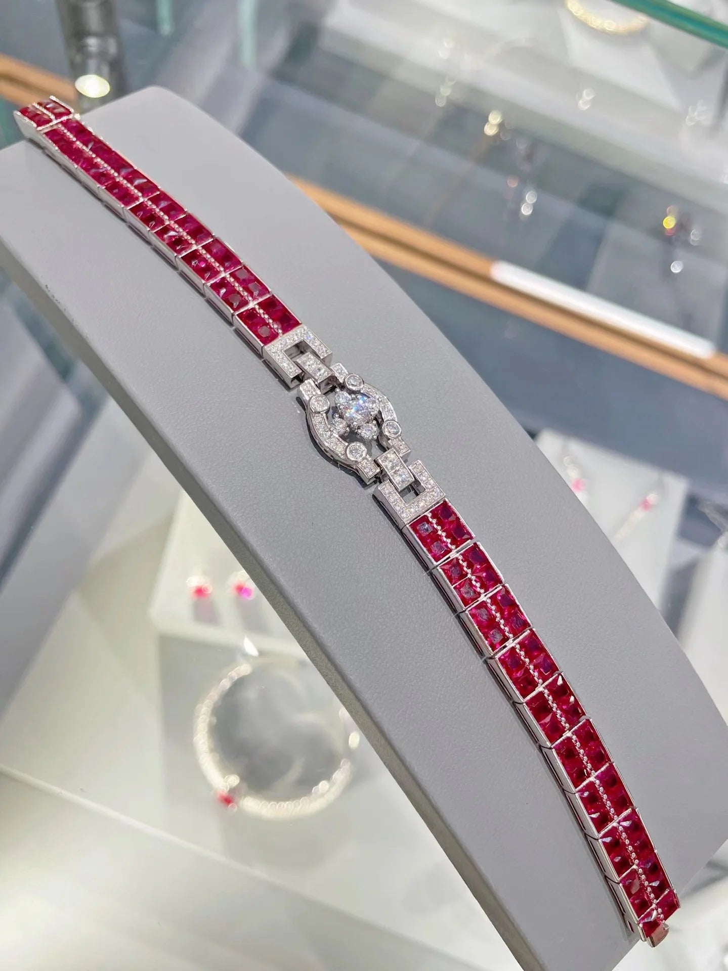 The Sangaria Sunset Bracelet captures the glow of golden hour in fine jewelry form. Crafted in 925 sterling silver, this 16-gram chain and link bracelet features a luminous row of white lab-created sapphires, accented with vibrant lab-created rubies that evoke the warm tones of a sunset cocktail.