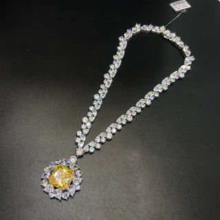 Gold-fused sterling alloy necklace featuring a central yellow lab-created sapphire framed by white sapphires, evoking regal vintage elegance.