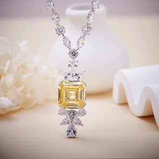 A touch of old-world royalty reimagined for today. The Golden Dynasty Necklace is crafted in a radiant gold-fused sterling alloy, a warm blend of copper and silver that gives the piece its signature golden hue without the weight of traditional gold. At its heart lies a glowing yellow lab-created sapphire, framed by crisp white lab sapphires that add just the right sparkle.
