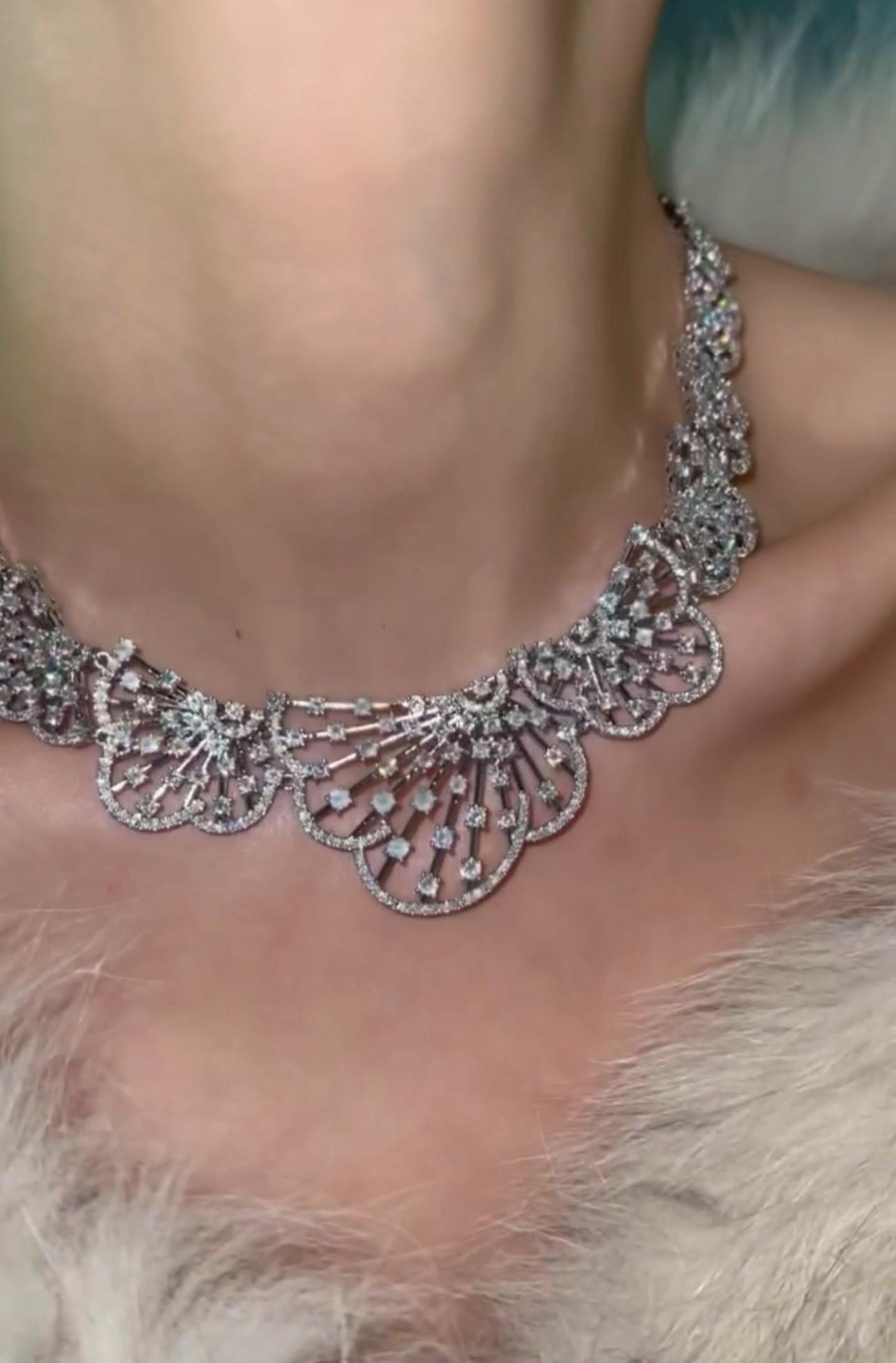 Keep away from water, perfume, and harsh chemicals. Wipe gently with a soft cloth and store in a fabric-lined box to keep its sparkle intact.
